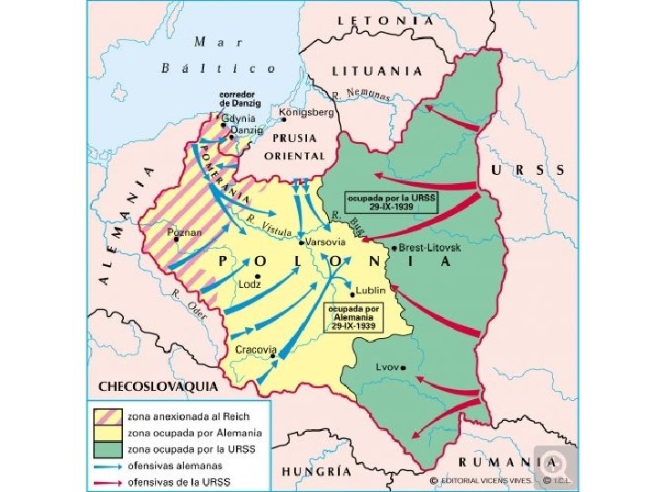 Alianzas Europa 1939: Eje: • Alemania • Italia (invade Albania) Pacto de no agresión: • Alemania • URSS Aliados: • Francia • Reino Unido • Polonia