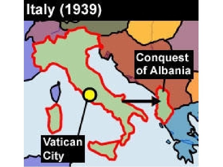 SITUACIÓN PREBÉLICA: 1936 -1939 Excesiva prudencia de la diplomacia occidental: EE. UU. en su aislamiento. Las tensiones se producían en oriente, frontera con la URSS. CAUSAS Stresa. 1935. Pacto entre Francia, Reino Unido e Italia contra las pretensiones anexionistas de Alemania y su militarización. La invasión de Abisinia por Italia quiebran el pacto Pactos entre los estados totalitarios: 1936 Pacto del Eje (Alemania, Italia), para la defensa. Japón se unirá en 1940. 1936 Japón pacta con Alemania contra la URSS 1939 Pacto de Acero (Alemania e Italia). En caso de guerra. 1939 Pacto de no agresión (Alemania y URSS) Alemania se anexiona (1938 -39) Austria, Sudetes, Bohemia… Italia invade Albania en 1939 Reino Unido y Francia firman (1939) pactos de defensa con Polonia, Rumania y Grecia.