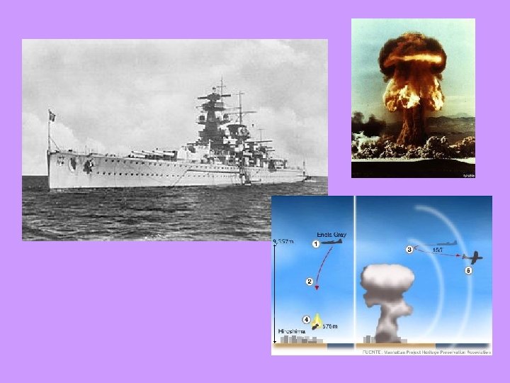 • Se aplicó la logística, la planificación de la estrategia militar, con el objetivo de conducir al campo de batalla, una cantidad de hombres necesarios para la lucha • Por primera vez, se coordinó la lucha vía aire, tierra y mar. • Armas utilizadas: – – – – – Avión Tanque Submarino Ametralladoras antiaéreas Minas submarinas Bombas B 1 y B 2 Paracaídas Bomba atómica La radio