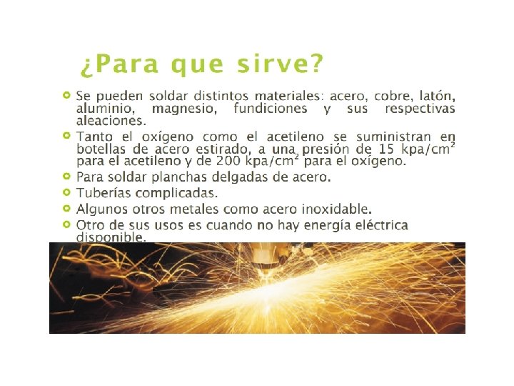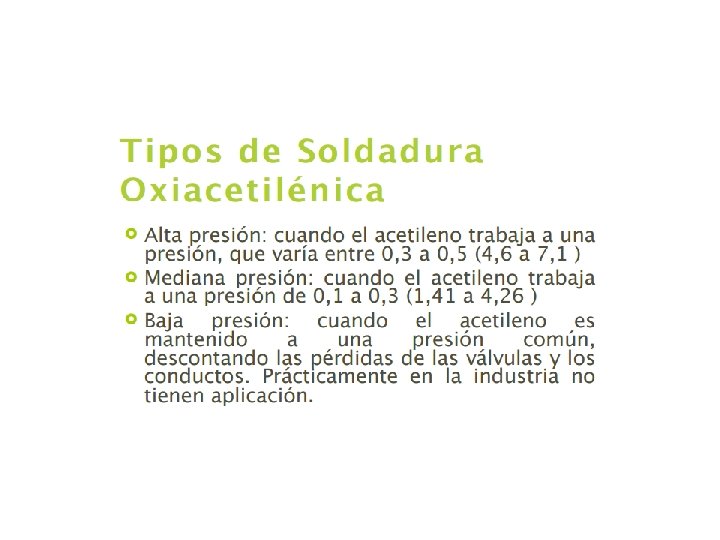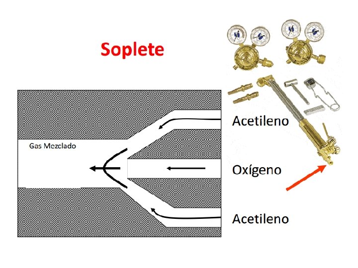 Soldadura oxiacetilénica (con gases al soplete) El calor aportado en este tipo de soldadura se debe a la reacción de combustión del acetileno (C 2 H 2) : que resulta ser fuertemente exotérmica, pues se alcanzan temperaturas del orden de los 3500 o. C.
