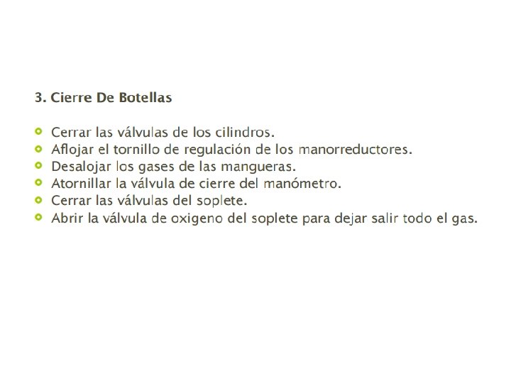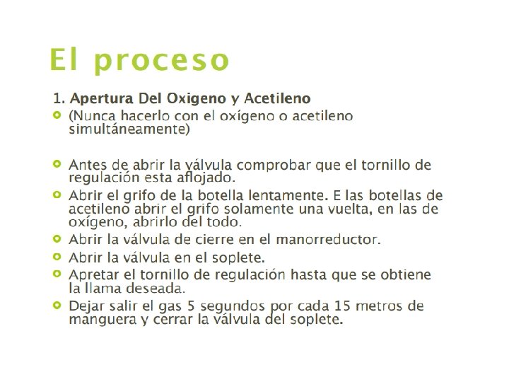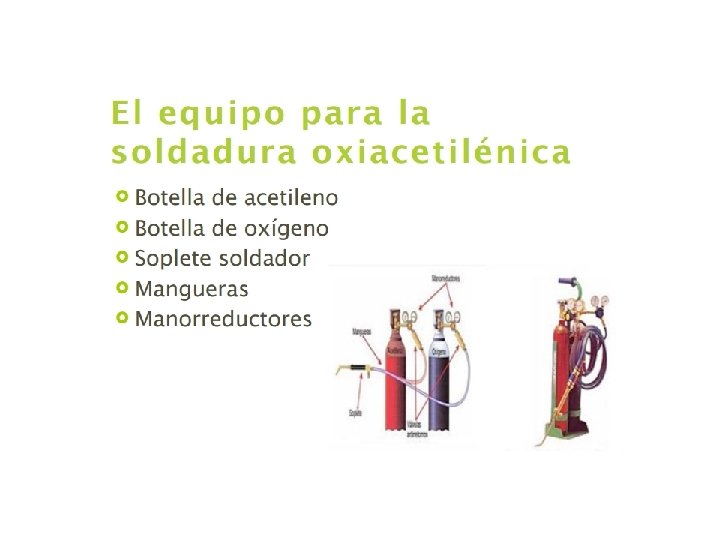 Para llevar a cabo esta soldadura es necesario disponer de: Una botella de acetileno disuelto en acetona (lo que reduce el riesgo de explosiones indeseables). La botella va provista de válvulas de seguridad, de una llave de cierre y reducción de presión y de un manómetro de control de baja y alta presión.