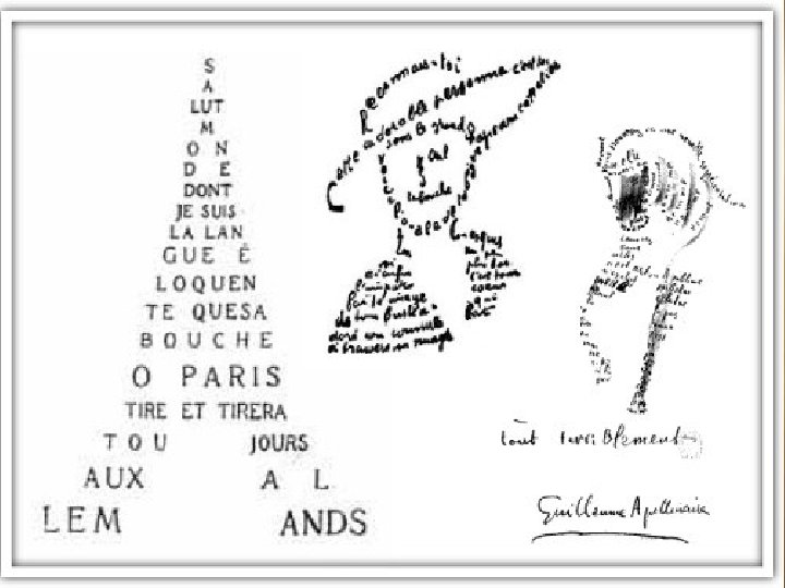 Toute activité consistant à « jouer avec les mots » . Exemples : les calligrammes. Un calligramme est un poème dont la disposition graphique sur la page forme un dessin, généralement en rapport avec le sujet du texte, mais il arrive que la forme apporte un sens qui s'oppose au texte. Cela permet d'allier l'imagination visuelle à celle portée par les mots.