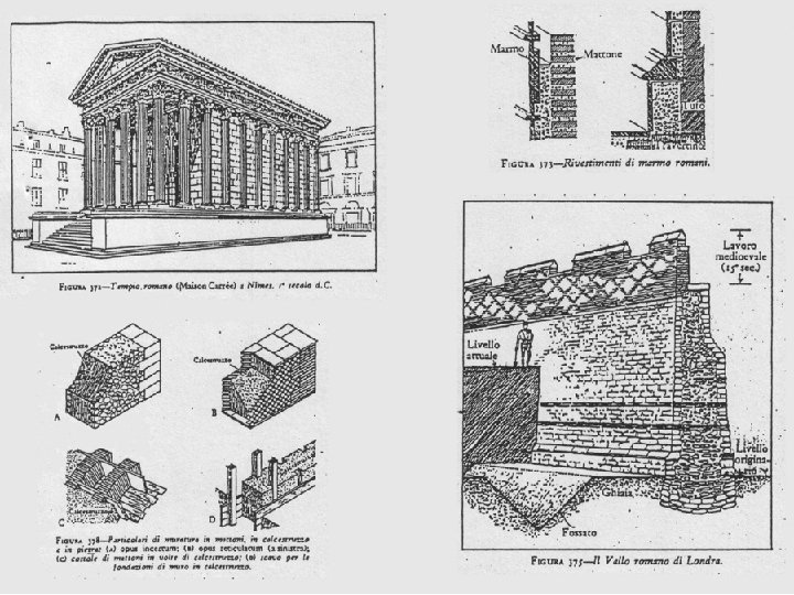 Costruzione voltata in calcestruzzo e mattoni - Basilica di Massenzio IV sec. d. C. Coperture in legno del IV e V sec. d. C.