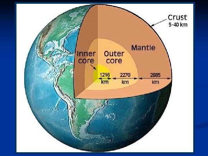 ESTRUCTURA INTERNA DE LA TIERRA Conocer el interior de la Tierra, su estructura y su composición, no es una tarea fácil. Los métodos DIRECTOS (sondeos, perforaciones, …) sólo permiten conocer una mínima parte de nuestro planeta: Unos 15 Km de los 6371 Km que hay hasta el centro de la Tierra.