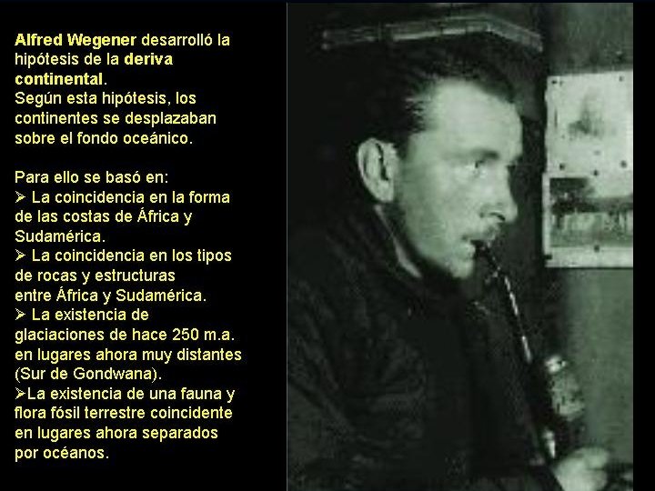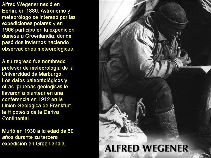 Además, estos procesos (volcanes, terremotos…) SIEMPRE se dan en determinadas zonas (muy localizadas) del planeta… ¿Por qué? No se dan al azar… Alfred Wegener (1880 – 1930) y su Teoría de la Deriva de los Continentes: Los continentes actuales no están en el mismo lugar que hace millones de años: se han MOVIDO MUY LENTAMENTE… Además, Wegener mostró Pruebas decisivas…