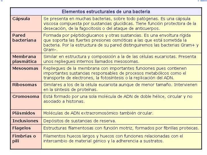 • • • unicelulares, procariontes Tamaño aproximado de 1 a 10 micras No tienen citoesqueleto No tiene organelos membranosos Habitan diversos ambientes Tienen diversas formas de nutrición Son indispensables para el equilibrio ecológico Contribuyen con los ciclos biogeoquímicos Remiten reciclar la materia en la biosfera Escherichia coli Bacillus antharacis