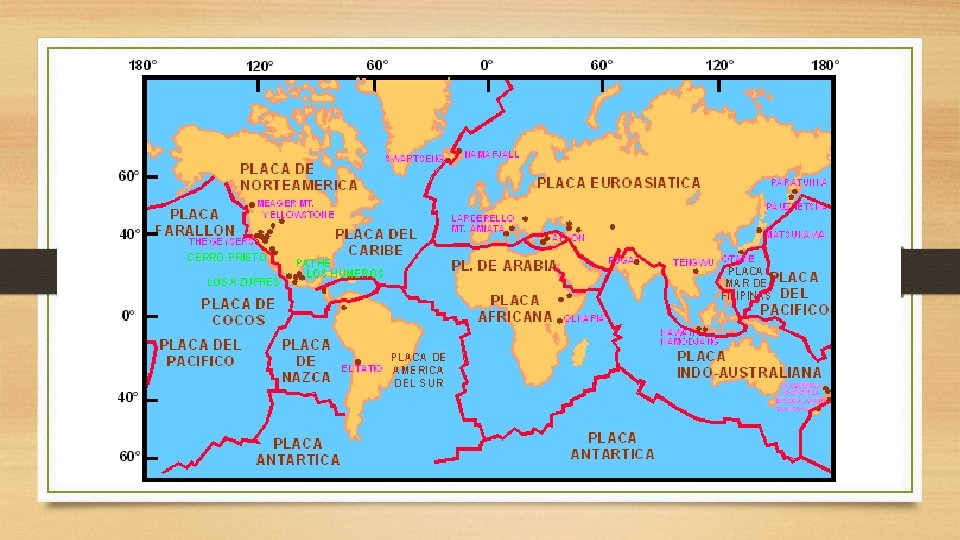 Tectónica de Placas • Placa tectónica: bloques de litosfera que se desplazan sobre la astenosfera