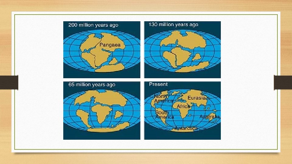 Tectónica de Placas • Alfred Wegwnwer: teoría de deriva continental • Pangea: gran masa continental • Evidencias que respaldan la hipótesis: • Evidencia fósil: fósiles de la misma especie en diferentes continentes