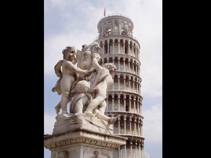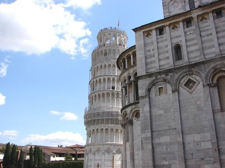 La torre inclinada es mundialmente conocida y famosa y es un paso esencial en Pisa, en Toscana. Construida en un delta del río Arno ya conocido como colonia etrusca en el asentamiento del siglo VII a. C. En 180 a. C. se convirtió en una provincia romana. En el s IX, mientras que todo el Mediterráneo se encuentra bajo dominio islámico, la flota pisana va ganado victorias sobre los piratas moros. Se incluyen las islas de Elba, Córcega y Cerdeña. En 1100 el área de influencia de Pisa se extendía hasta las Islas Baleares. Por un mal juego de las alianzas es un siglo más tarde sustituida por Lucca y Florencia. Génova toma la supremacía marítima, y la flota de Pisa quedó totalmente destruida en la batalla de Meloria en 1284 Pisa fue el lugar de nacimiento de dos famosos matemáticos: Leonardo Fibonacci (1175 -1240) quien introdujo los primeros números arábigos en los cálculos, y Galileo (1564 1642), que observó la araña central del Duomo mientras estaba aburrido durante el servicio, revolucionado la visión medieval del universo. "Y sin embargo se mueve"