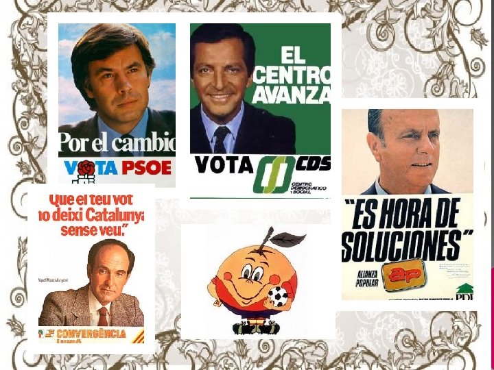 Gabriel Cisneros (UCD) José Pedro Pérez Llorca(UCD) Miguel Herrero (UCD) Jordi Solé i Tura (PCE) Miquel Roca i Junyent (P. Democràtic per Catalunya) Manuel Fraga (AP) Gregorio Peces Barba (PSOE) LOS PADRES DE LA CONSTITUCIÓN