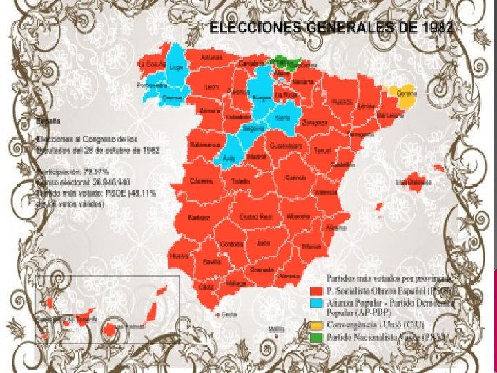 • Así mismo, en el Título VIII se regula la descentralización de ciertos poderes del Estado y posibilita la creación del Estado de las Autonomías con dos etapas: q. Primera etapa: las preautonomías, es decir la concesión de autonomía provisional a regiones cuyos representantes parlamentarios la solicitaran. q. Segunda etapa: se emprende a partir del momento en el que la Constitución reguló definitivamente el régimen autonómico.