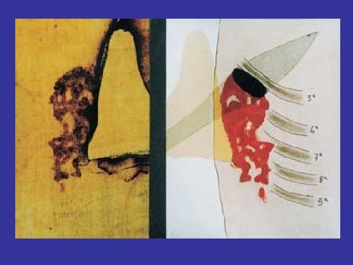 Considerazioni finali 1 1 - La Sindone non sembra falsificabile: nessuno è riuscito finora a produrne un sosia. 2 - Totale assenza di pigmento, colore, vernice. . . L'immagine non è dovuta a colorazione, ma a scolorazione: il come non è conosciuto. 3 - L'immagine è impressa al rovescio di quanto richiede il nostro occhio (= negativo ottico): c'è stato un rovesciamento di luci e ombre. Di conseguenza solo la fotografia nel suo negativo ha rivelato l'immagine che stava nascosta e che i grandi pittori non erano riusciti a decifrare. 4 - Il computer ha rivelato la tridimensionalità dell'immagine e la sua assenza di direzionalità: cosa impossibile per qualsiasi falsario. 5 - Ci sono delle informazioni non visibili a occhio nudo. 6 - Ci sono poi diverse informazioni non compatibili con la cultura medioevale: - la distinzione tra sangue venoso e arterioso, come appare dalle macchie di sangue, è solo del 1500; - il modo della coronazione di spine è in netta opposizione con quello dei pittori e scultori; - così pure la trafittura dei chiodi ai polsi e non al palmo della mano (la crocifissione era stata abolita da Costantino e le sue modalità dimenticate: il chiodo piantato nel palmo non tiene ma lacera la mano a causa del peso in trazione); - la sparizione del pollice dovuta a contrazione del nervo mediano.