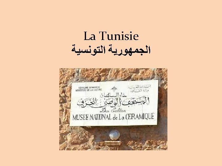 La Tunisie ﺍﻟﺠﻤﻬﻮﺭﻳﺔ ﺍﻟﺘﻮﻧﺴﻴﺔ la Tunisie était un protectorat français du 12 mai 1881 au 20 mars 1956. Ses habitants parlent l’arabe et le français.