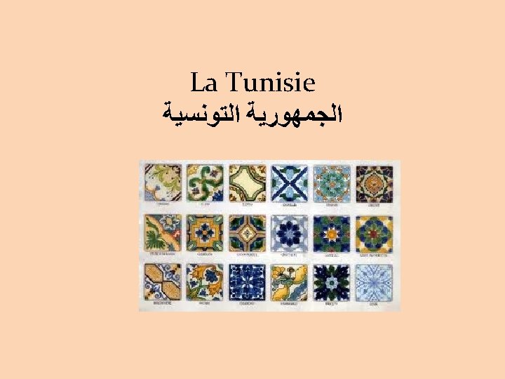 La Tunisie ﺍﻟﺠﻤﻬﻮﺭﻳﺔ ﺍﻟﺘﻮﻧﺴﻴﺔ Les dessins sont en forme géometrique