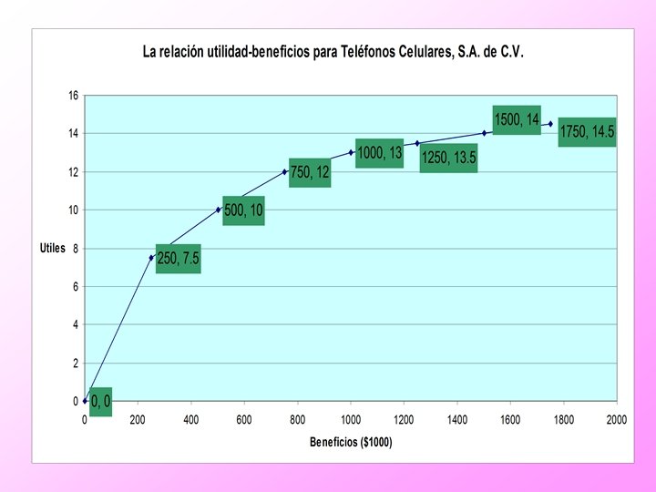 CONCLUSIÓN: Susana debe recomendar la estrategia 1, debido a su mayor utilidad esperada. En este caso los mayores beneficios esperados de la estrategia 1 más que compensan su mayor riesgosidad. E (U 1) = 12. 40 > E (U 2 ) = 11. 70
