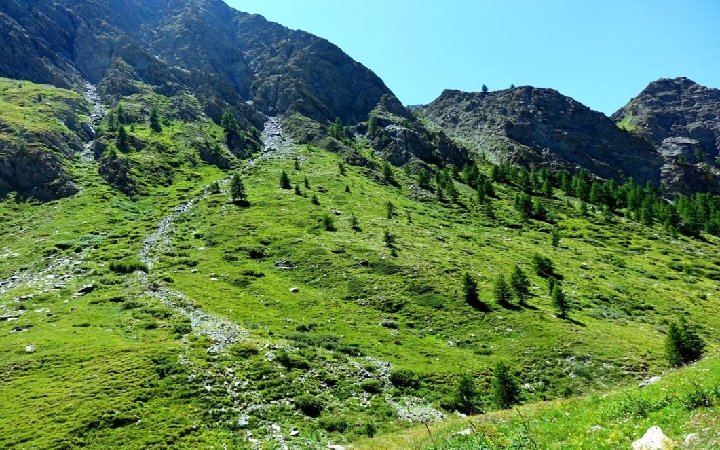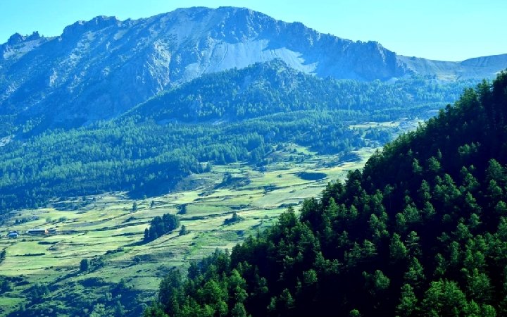 la vallée du Queyras • • • • La vallée du Queyras, et par extension le Parc du Queyras, disposent d'un patrimoine naturel riche, avec plusieurs espèces rares et endémiques. Cette biodiversité s'explique par la géologie du territoire, faite de lacs glaciaires, de prairies d'alpage et de fonds de vallées larges : ces richesses naturelles sont d'une grande fragilité donc protégées, qui attirent chercheurs et spécialistes. Si les pentes étaient jusqu'à la fin du XXIème siècle fortement cultivées, elles sont recouvertes de plus par une forêt riche, majoritairement composée de Mélèzes, Pins Sylvestres et Pins à crochet et Pins Cembro. Quelques feuillus sont présents (trembles, bouleaux, noisetiers, sorbiers, amélanchiers, etc. ). A noter qu'au delà de 2400 mètres, les arbres étaient absents jusqu'à présent, mais la réduction des activités de pâturage tend à faire observer une remontée du seuil limite de pousses des arbres. Le Queyras a été reconnu en 2013 treizième réserve transfrontalière Man and Biosphère MAB UNESCO , en partenariat avec les communes frontalières italiennes et ce pour une durée de 10 ans. La réserve de biosphère comprend non seulement les communes associées au Parc Naturel Régional, mais aussi toutes celles du Guillestrois et une grande part de celles du Briançonnais dont Briançon. Côté italien, plus de 100 communes sont associées.