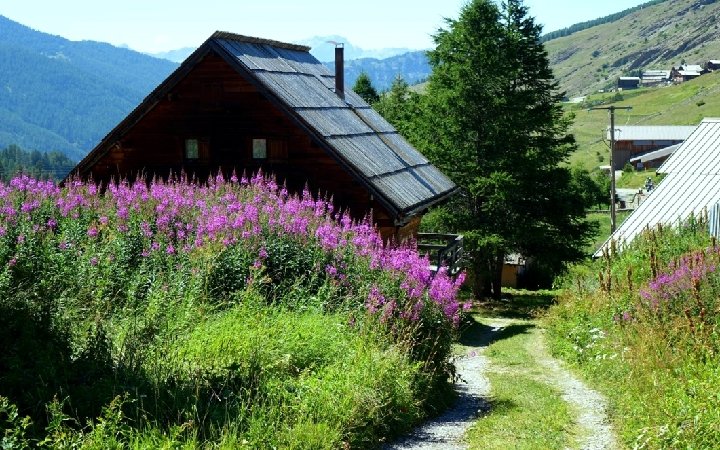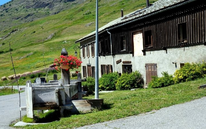MOLINES-EN-QUEYRAS • Au cœur du Parc Naturel Régional du Queyras, dans un site enchanteur, à 15 Km de la frontière italienne, Molines en Queyras est un beau petit village aux maisons de bois - façades en rondins de mélèze, balcons en planches typique de cette région du Haut Queyras - de vieilles maisons traditionnelles, dites “fustes” (du latin “fustis”, poutre en bois). Ces maisons de bois comportaient étable et habitation au rez-de-chaussée et “fuste” à l’étage, servant à la fois de grange et de fenil. De nos jours, de nombreuses fustes ont été réaménagées pour en faire des logements modernes, mais la plupart datent du 17ème et du 18ème siècles, et sont égayées de pittoresques cadrans solaires sur leurs façades. Typiques également, les fontaines et abreuvoirs en bois, de même que le “four banal” qui a conservé tout son cachet ainsi que les fruitières (maisons où l'on collecte le lait) : autant de symboles de la vie communautaire d'autrefois. • L'histoire de Molines est bien connue car les transitons, registres tenus par les habitants, et qui décrivent la vie quotidienne et les événements les plus marquants de chaque hameau/village, ont été bien conservés. Les premiers transitons retrouvés datent du XVIème siècle, les derniers du début du XXIème siècle, et ils sont conservés en partie au Musée Départemental de Gap. Ils permettent ainsi de bien connaître les difficultés de ces vallées reculées à travers les siècles, dans cette zone de passage entre Italie et France, qui a vu passer des moments importants de l'histoire française. La commune de Molines-en-Queyras se situe au carrefour des vallées de l'Aigue Agnelle et de l'Aigue Blanche, dans le Parc Naturel Régional du Queyras (Hautes-Alpes), vallées qui donnent accès à l'Italie. • •