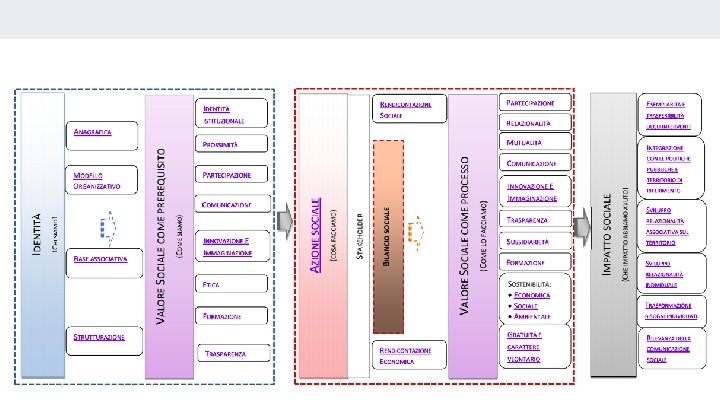 Un po’ di chiarezza Monitoraggio, processo di valutazione, valore sociale, impatto sociale sono concetti differenti, all’interno di una stessa cornice. E’ indispensabile chiarire il significato al di là della terminologia inserita nella norma.