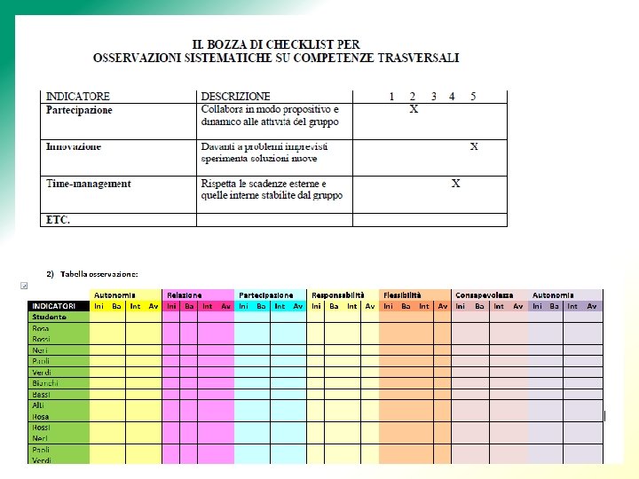 VERIFICA E VALUTAZIONE DELLE COMPETENZE • B. OSSERVAZIONE strumenti osservativi SISTEMATICA: gli
