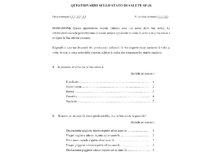 METODI DI SOMMINISTRAZIONE DI UN QUESTIONARIO Uno strumento di valutazione della Qo. L può essere: n Somministrato faccia-a-faccia da intervistatori istruiti n Autosomministrato, compilato sotto la supervisione di una persona istruita n Somministrato telefonicamente n Somministrato con l’aiuto di computer n Somministrato a “sostituti” degli intervistati
