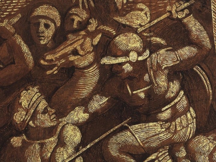 Uscirono, allora, uomini da tutti i villaggi che si trovavano all'intorno, li accerchiarono e li fecero rivoltare gli uni contro gli altri. Così caddero tutti a fil di spada e non ne rimase neppure uno. Presero le loro spoglie e il bottino, mozzarono la testa di Nicànore e la sua destra, che egli aveva stesa arrogantemente, e le portarono e sospesero presso Gerusalemme. 1 Mac 7, 39 -47