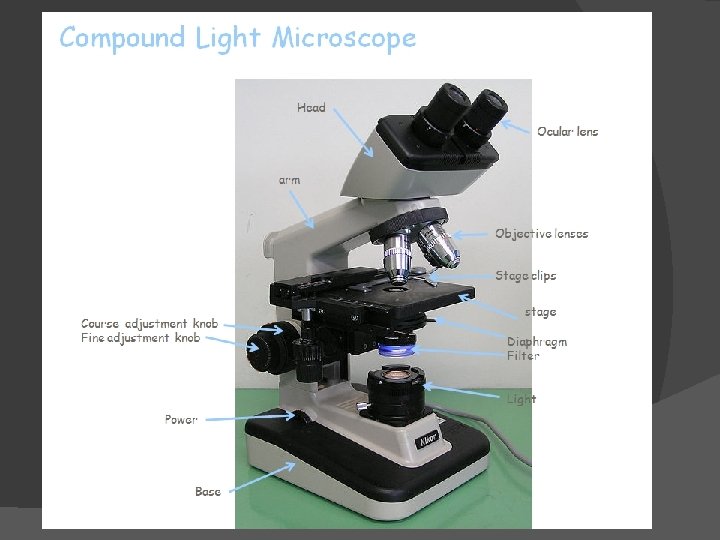 Learn parts of the compound microscope that we will use Learn how to make a wet mount Refer to Figure 2. 9 Metric System Be comfortable with measurements and know how to do conversions!