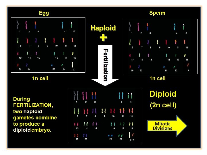 Haploid + 23 chromosomes + Diploid Embryo 23 chromosomes 46 chromosomes