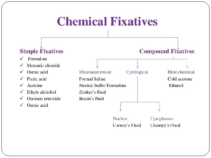 Cont. �Note : If the water is one of the fixative components must be the work of dehydration step after the fixation process while the water was not a contents do not need to perform this step