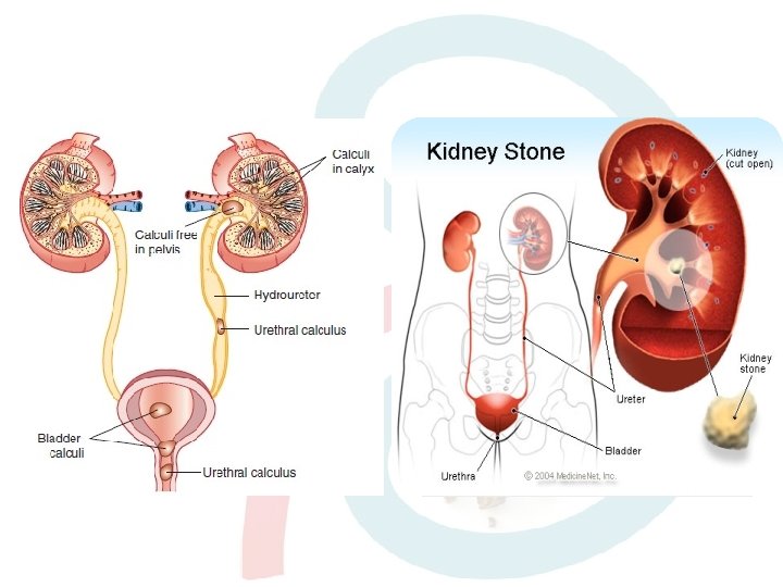 3. Mg ammonium PO 4 stones About 10% of all renal stones contain Mg amm. PO 4 Also called struvite kidney stones Associated with chronic UTI From Microorganisms (such as Proteus genus) that metabolize urea into ammonia Causing urine p. H to become alkaline and stone formation Commonly associated with staghorn calculi 75% of staghorn stones are of struvite type