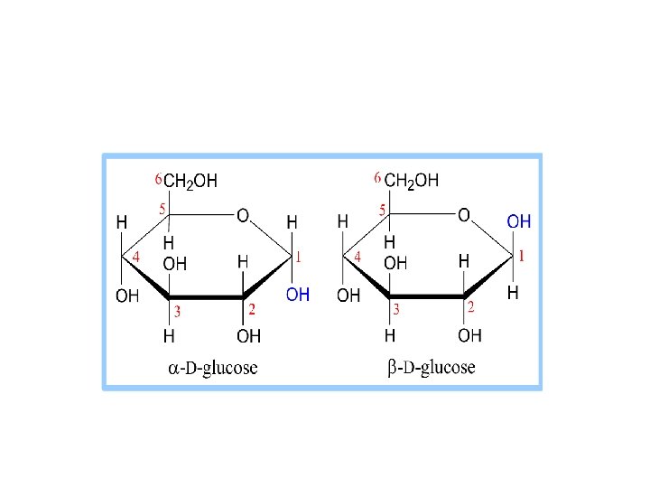 Cyclization of glucose produces a new asymmetric center at C 1. The 2 stereoisomers are called anomers, a & b. Haworth projections represent the cyclic sugars as having essentially planar rings, with the OH at the anomeric C 1: w a (OH below the ring) w b (OH above the ring).