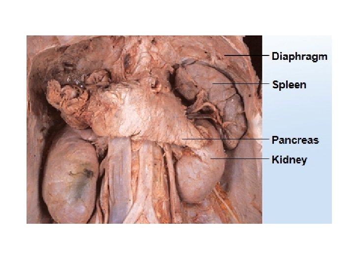 The Spleen It is the body’s largest lymphatic organ. Parietal peritoneum Visceral peritoneum Spleen Stomach Diaphragm Rib Liver Pancreas Aorta Gastrosplenic ligament Gastric area Diaphragmatic surface SPLEEN Hilum Renal area Kidneys