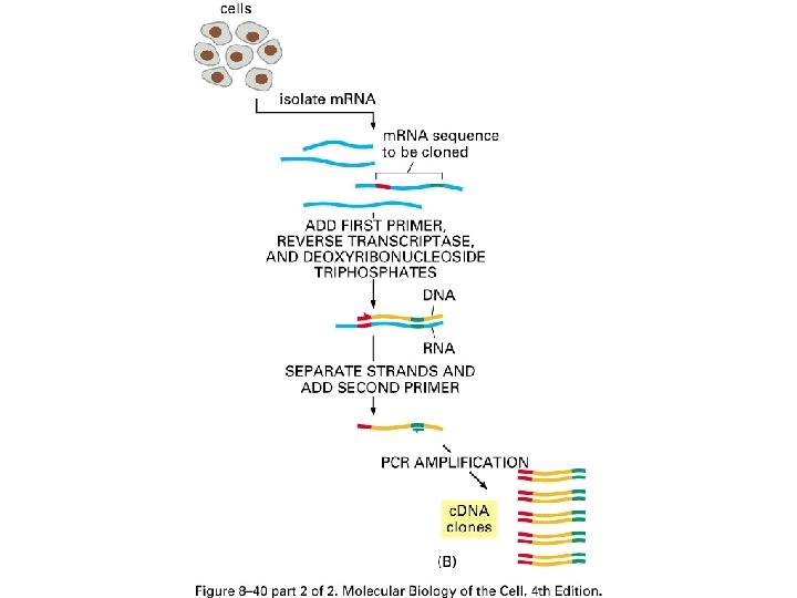 v Amplifying DNA in vitro by PCR • Small amount of double-stranded DNA • DNA precursors • Specific nucleic acid primers • Taq DNA polymerase Ø DNA is denatured Ø Primers attach to primer-binding site on each DNA strand Ø Each strand acts as template for DNA synthesis