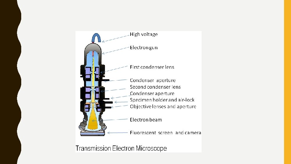 ELECTRON MICROSCOPES • Works in a very similar fashion to the optical microscope, however, instead of visible light it uses a stream of electrons. • Electrons have a wavelength 100, 000 x shorter than visible light photons. • This allows for magnifications of up to 10, 000 x