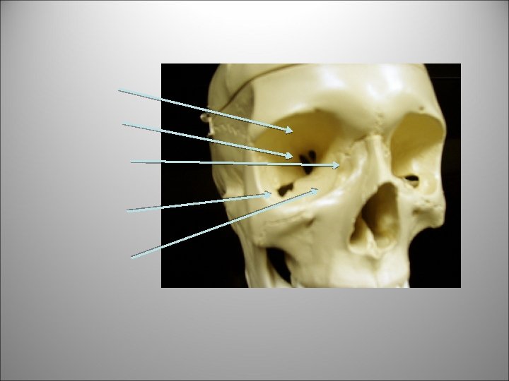 Frontal process of the maxilla Frontal process of the zygomatic Zygomatic process of the frontal bone Perpendicular plate (ethmoid bone) Zygomatic process of the maxilla