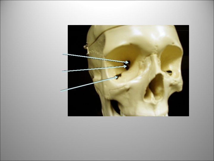 Optic canal Superior orbital fissure Inferior orbital fissure