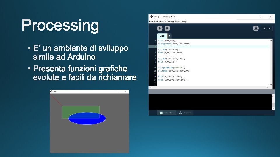 • Funzioni setup{} e draw {} • Funzioni legate allo stato del Mouse • Funzione per disegnare (o meno) il background
