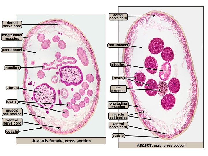 Nematoda: Ascaris 1. Take a slide from your box with a cross section of a male and female Ascaris.