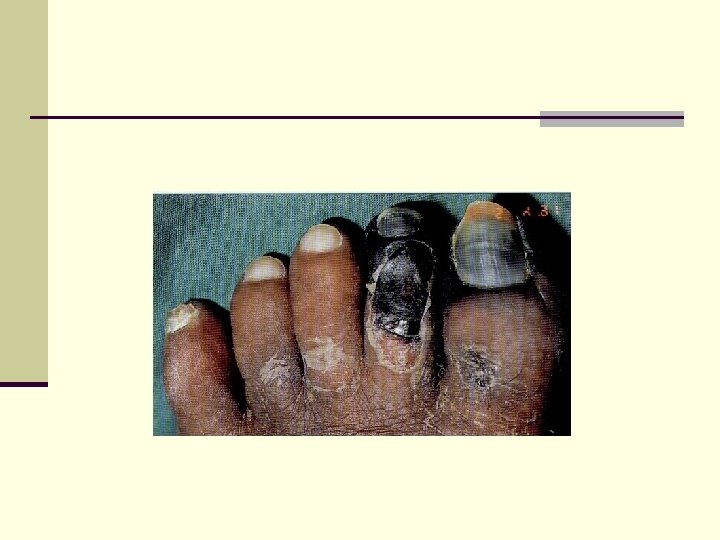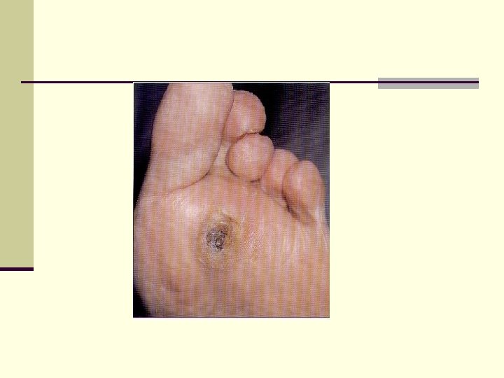 Sign Ischemic Temperature of the skin Decreased Color of the skin pallor or cyanotic Pulsation on peripheral decreased or vessels absent Edema Neuropatic normal or pink normal Sensibility Absent can be partly decreased or decreased normal absent Ulcers peripheral (distant) Gangrene Dry under pressure moist or the