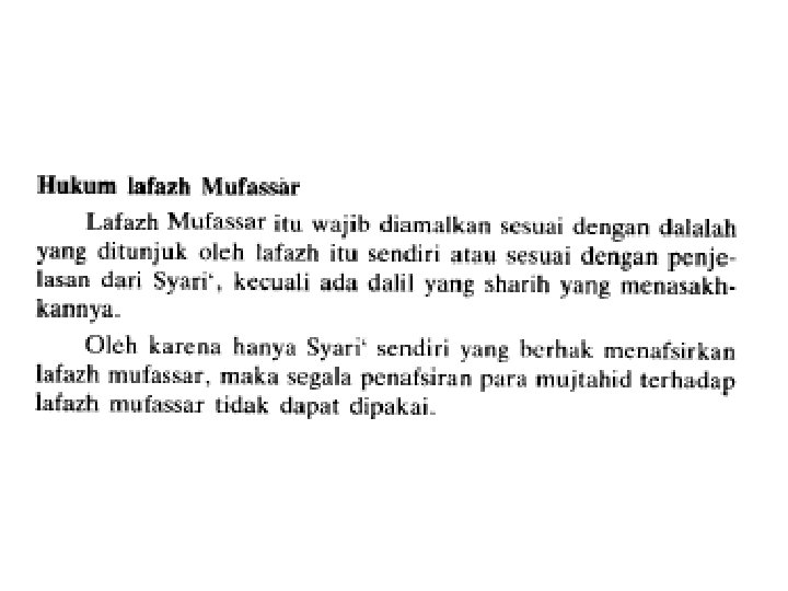 Mufassar qlafazh yang menunjuk kepada makna sebagaimana dikehendaki oleh shighat lafadz itu sendiri dan siyaqul kalam, qtidak dapat ditakwilkan ditafsirkan selain oleh Syari’ itu sendiri dan qdapat menerima nasakh pada zaman Rasulullah SAW.