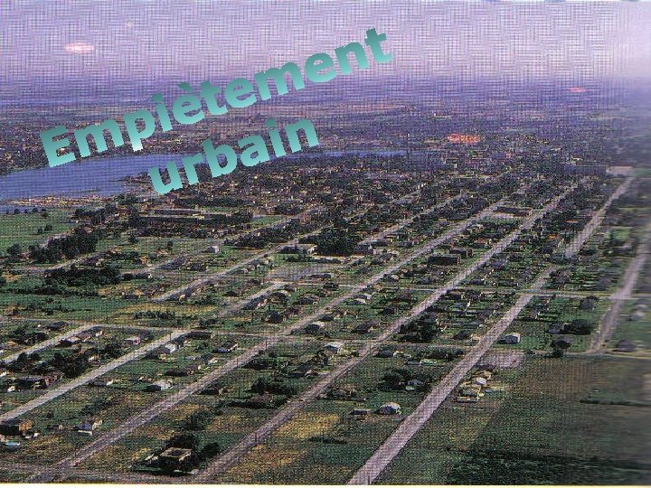 E-L’empiètement urbain ¡ Les gens de la campagne se dirigent vers les villes se qui causent l’expansion des villes au détriment des bonnes terres agricoles.