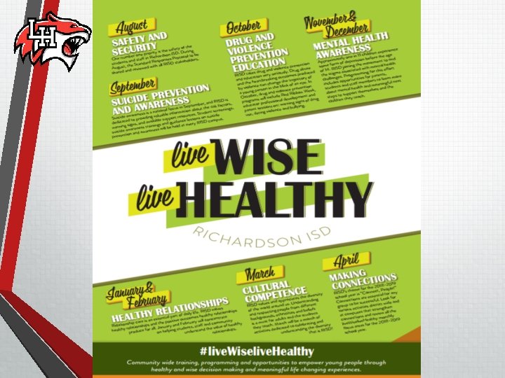 Staying Connected & Being Successful at LHHS • Counselor Webpage: https: //schools. risd. org/domain/2013 • Check your grades and attendance frequently on Focus. • LHHS PTA link: http: //www. lhhspta. org/ • Wildcat Weekly-to receive weekly Wildcat e. News via email; send an email to: lhhs-subscribe@listserver. risd. org • Follow the counselors on Twitter @LHHS_Counselors. – Teacher/Staff email: first. last@risd. org – See your teachers for tutoring times.