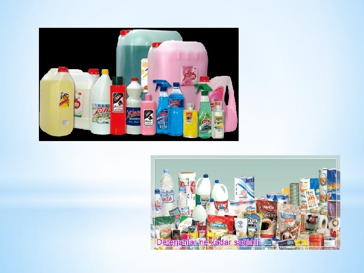 SABUN VE DETERJAN ARASINDAKİ FARKLILIKLAR * Sabun sert sularda 2+ deterjan kadar iyi temizlemez. Sert 2+ + sularda bulunan Ca ve Mg iyonları sabundaki Na ve K+ iyonlarıyla yer değiştirerek çökelek oluşturur. Böylelikle sabun molekülü aktivitesini yitirir. Oysa deterjanlar sert sulardaki iyonlarla çökelek oluşturmaz. Bu nedenle sert sularda da temizleme işlevini sürdürürler. * Yapısında benzen halkası taşıyan deterjanlar (alkil benzen sülfonat deterjanları) benzen halkası oldukça kararlı olduğundan doğada mikroorganizmalar tarafından parçalanamazlar ve çevre kirliliği yaratırlar. Oysa uzun hidrokarbon zincirine sahip olan sabunlar kolaylıkla parçalanırlar. Bu nedenle sabunların çevreyi kirletici etkisi deterjanlara göre daha azdır. * Sabun bitkisel veya hayvansal yağlardan elde edilirken, deterjanlar petrol türevlerinden elde edilirler.