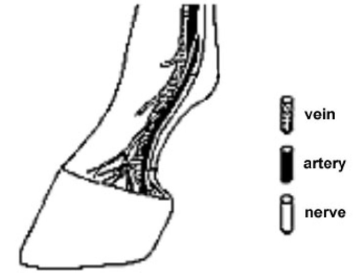 The blood supply to the equine foot is unusual. All arteries have receptors in their walls that can bind specific chemical messengers circulating throughout the body. The binding of these chemicals some like bradykinin causes the dilation or constriction of the arteries changing the amount of blood reaching the tissues. Blood rich in the oxygen and nutrients necessary to sustain living tissues is carried in arteries from the heart to the hoof. It then passes through a capillary bed in the dermis where oxygen and nutrients can diffuse to the cells.
