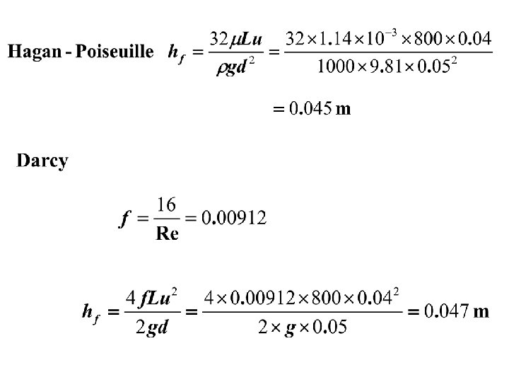 f in Laminar Flow • We have the Hagen-Poiseuille equation Ø Head loss in laminar flow • We also have the Darcy equation • Equate the two equations