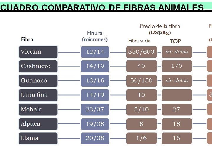 Cuadro comparativos de las fibras naturales *Precios correspondientes a Abril 2001
