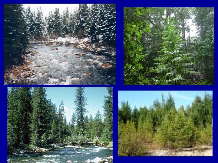 Boreal Forest (Coniferous Forest, Taiga) • Climate: cold, some rain, large amounts of snow fall. Winter 6 months of the year. • Consumers: deer, ducks, geese, moose, mountain goats, bears, bighorn sheep, porcupine. • Producers: spruces, firs, pines, aspens, poplars, mosses, lichens, wildflowers MOST OF THE TREES ARE CONIFERS (trees with cones) • Extra facts: Most trees are evergreens (trees that stay green all year). • Video (2 minutes) Brain pop on Taiga