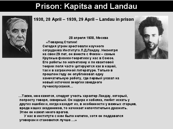 Two years in Europe 1929, January – 2 year scientific trip over Europe: Berlin, Gottingen, Leipzig, Copenhagen, Cambridge, Zurich (A. Einstein, M. Born, W. Heisenberg, N. Bohr, W. Pauli, E. Schrodinger, P. Dirac, P. Kapitsa) Landau in Copenhagen 1930, 8 April – 3 May 1931, 25 February – 19 March