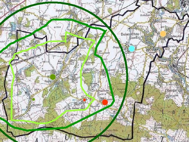 5. Schritt: Ermittlung der erforderlichen Standorte an Fw-Häusern Ø erforderliche Anzahl bei geringsten Überschneidung der Einsatzbereiche Ø Beachte: Innanspruchnahme der Feuerwehr der Nachbargemeinde (Vereinbarung) 24