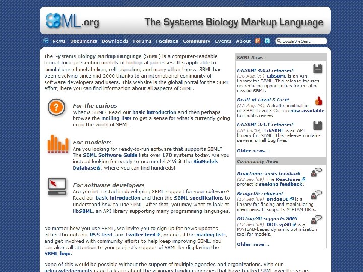 Example of Model Standards n Symbolic-Biology Markup Language (SBML) – http: //sbml. org n Weed. ML (paper forthcoming from Niels Holst, Denmark, in “Weed Science” journal) – http: //weedml. org