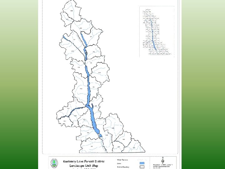 • Larger areas are preferred, to provide flexibility. • In Kootenay Lake TSA, we have 24 LU’s, ranging in size from 30, 000 to 80, 000 ha. • LU’s were estabished by District Manager’s Order in July 1998 • We have found the LU files (12500 -25 K 01) to be a useful place to store miscellaneous land-based information. • Although old growth is the primary reason for the existence of LU’s, policy direction is to use constrained or inoperable forest first. You should, therefore, gather all relevant resource information.